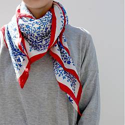 Combining ethics with aesthetics, the British designs are materialized into bags and accessories all handmade in Calcutta. The craftsmanship is authentic and traditional, whilst the materials used are acquired from the surrounding region, ensuring the community benefits are felt at grass roots level. The result is a beautifully designed scarf made in a truly ethical way.
