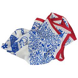 Working alongside NV London Calcutta, Ryan has created one of his signature intricate paper cuts, depicting a bird scene, flowers, girls and shoes. Paying tribute to Britain, the limited edition scarf is designed in the colours of the Union flag and uses environmentally sustainable toxic free dyes.